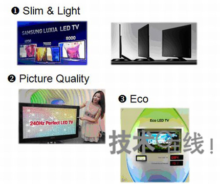 從各公司的計劃來看,三星電子為1000萬臺以上,LG電子、索尼及夏普分別為500萬~700萬臺。實際上,早在2009年下半年起,眾多組裝廠商及面板廠商就已開始強化LED背照燈液晶電視的產品線。同時還在強化供應鏈,努力提高價格競爭力。