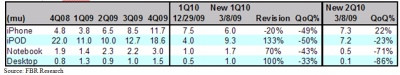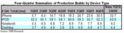 FBR對2010年第一季Apple產品生產量預估數字
