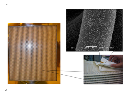 化學過濾器的濾材相當特殊,看起來像是由纖維織出的布,圖 2的右上就是其中的一根纖維,該纖維上的顆粒,推測為銨化物。