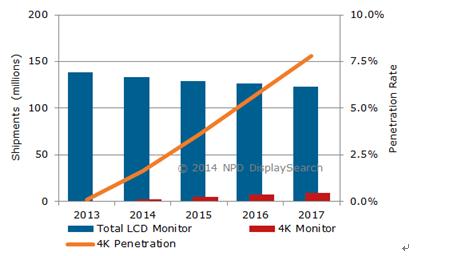 2014年4K臺式電腦顯示器出貨量將達200萬臺