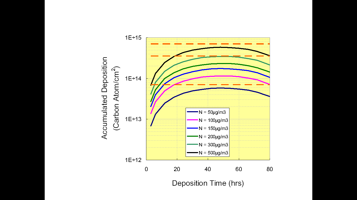 參考圖 4的三條橘色虛線,并考慮合理的環境控制經濟效益及過去于他廠的采集經驗,中間的橘色虛線,也就是,當環境為300μg/m3是合理可以接受的數值。換句話說,我們建議環境的有機物至少低于300μg/m3。