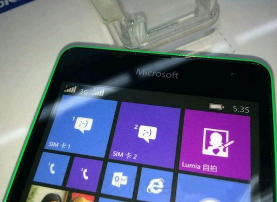 現在,網上已經出現了Lumia535的真機圖片。從外觀上來看和此前工信部放出的照片沒什么區別,同樣支持雙卡雙待功能。