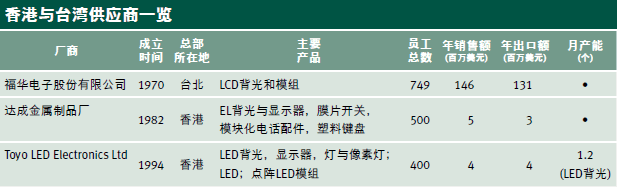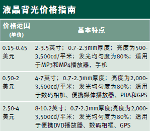 對于中小型應(yīng)用,廠商的幾乎所有材料都購自珠江三角洲地區(qū)和夏門的供應(yīng)商。由于預(yù)計原材料供應(yīng)與成本將保持穩(wěn)定,這些背光的價格將保持在0.30-0.40美元。