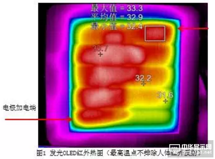 目前有兩種解決途徑:一是石墨脂等導熱材料散熱;二是改變面板電極來改變電流密度。兩種途徑操作的前提是了解OLED面板的分度分布現(xiàn)狀,兩種途徑成功的前提是證明沒有高溫部分且分布均勻。所以整個過程都必須要借助熱成像技術(shù)的幫助。