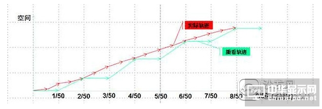 從上面的圖我們看出,實際的運動軌跡和最終電視上看到的軌跡差別比較大。我們將兩張圖疊起來大家就更容易看出來。