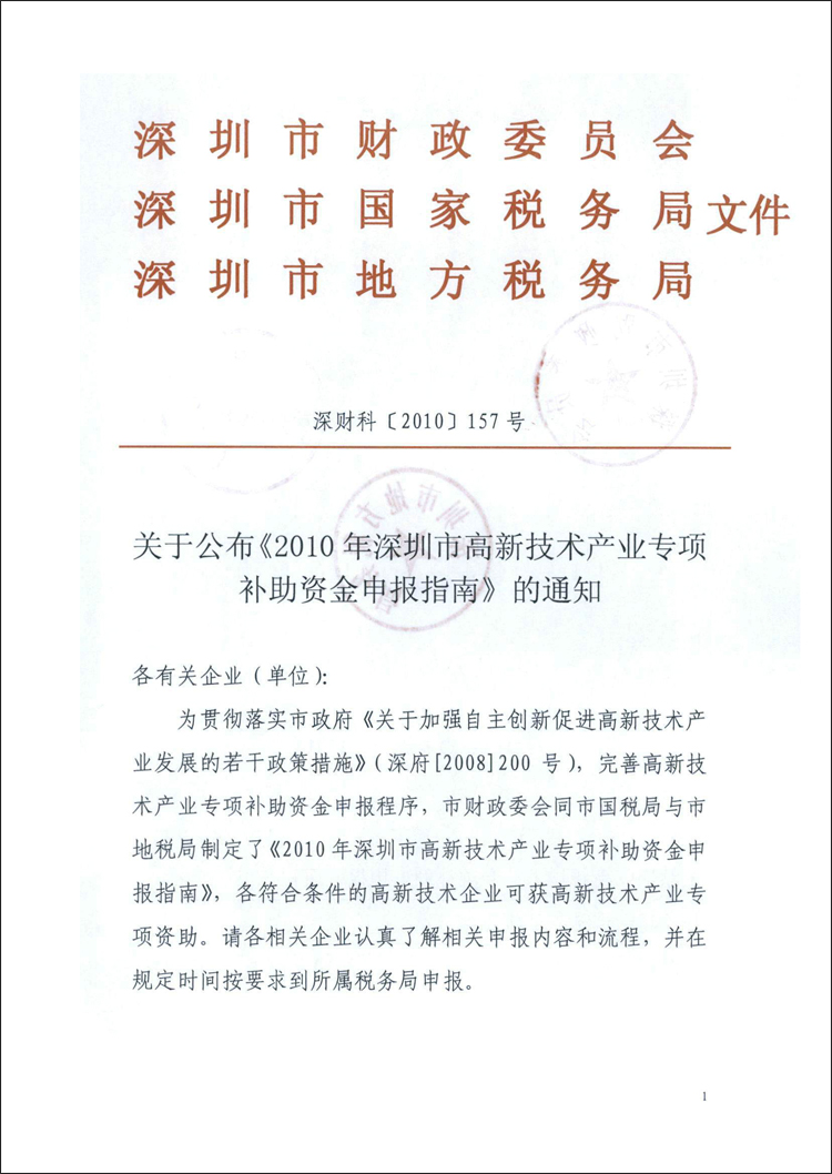 關于公布《2010年深圳市高新技術產業專項補助資金申報指南》的通知
