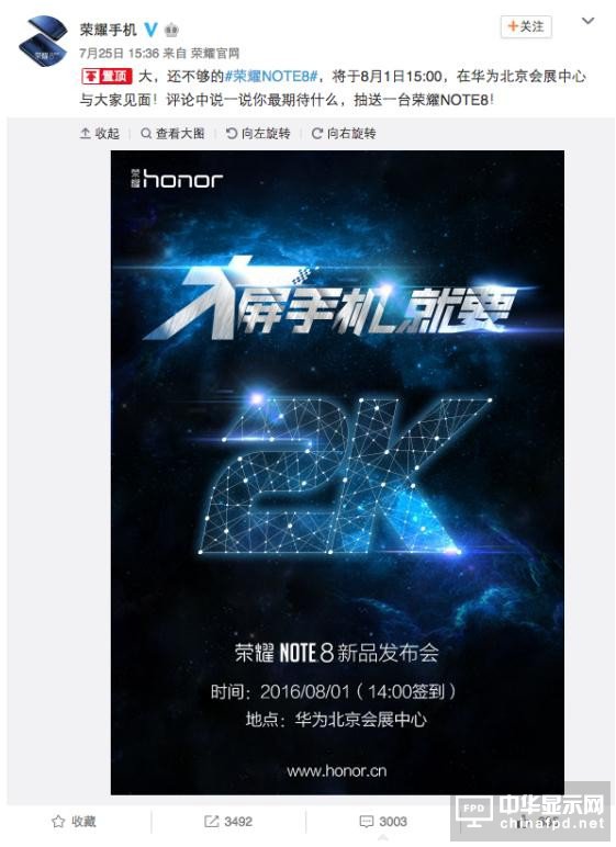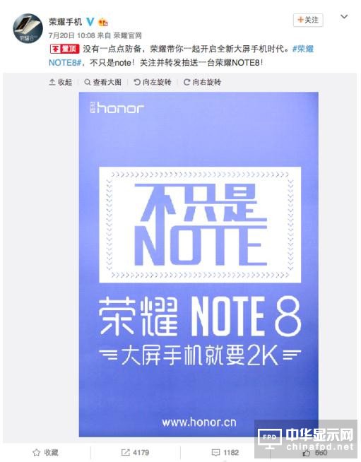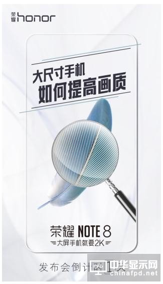 榮耀NOTE8今日發布:大屏+大電池+2K屏