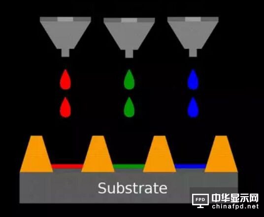 OLED屏幕每個像素“燈泡”除了是蒸上去的,還可以選擇“印”出來。用噴墨打印機來舉個例子,噴墨打印機是把墨水噴到紙上,從而呈現出文稿或圖片。而印刷顯示是使用印刷方式制作顯示器的有機材料膜層,是一種工藝方法。實現了印刷顯示后,可以印刷不同面板,如果“噴”的是OLED材料,那就是OLED面板;“噴”的是量子點材料,那就是量子點顯示面板。印刷OLED,簡單說,就是通過噴墨印刷設備上的多個印刷噴頭,將不同顏色的聚合物發光材料溶液精確的沉積在ITO玻璃基板的隔離柱槽中,溶劑揮發后會形成100納米左右厚度的薄層,構成可發光的像素。