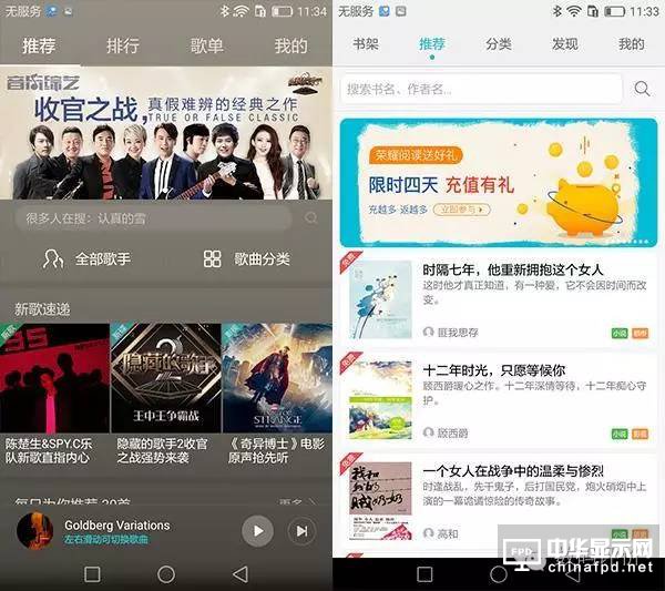 EMUI4.1內置的各種生態服務也是不斷升級的,最新的華為音樂已經升級到5.0,由QQ音樂供應內容,原來的高音質MP3已經開放給所有用戶,而對于付費會員則提供無損音樂下載。榮耀閱讀也是不錯的閱讀工具,內容豐富并且定期有活動。