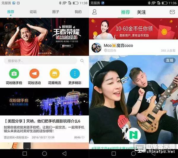 花粉俱樂部APP是手機用戶交流的場所,目前華為會員也已經開通社交功能。右邊的NOW直播是騰訊開通的直播平臺,無縫接入QQ,已經成為榮耀手機預裝APP。為什么要用榮耀暢玩6X直播?因為這款手機的視頻帶美顏功能。