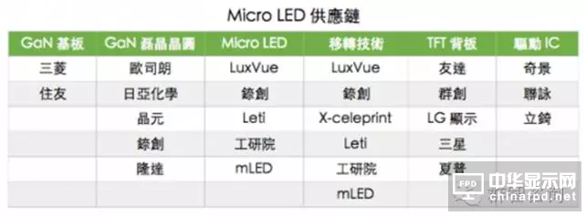臺企在Micro LED技術搶先一步,為未來搶占市場制高點奠定了很好的優勢。