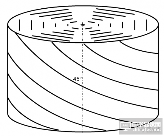 藍相液晶的一個特點是系統穩定,雖然其結構呈雙扭旋特性,離中心軸越遠則越不穩定,但依然比普通液晶的單扭旋結構穩定性更好,盡管差別不會很大。一個單位體積的雙扭旋結構為柱狀系統,內部擁有多個螺旋軸并交匯于中央的中心軸,以45°圍繞中心軸旋轉。將多個雙扭旋結構堆疊在一起,便是通常意義上的藍相液晶了。