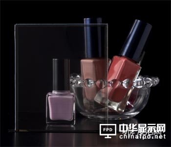 這項技術據稱已經達到80%的透明度,在演示環節里能夠看到,即便在指甲油面前放上這塊透明液晶,物體的通透度也沒有大幅下降。雖然目前的試制品只有4英寸300×360的分辨率,精細度為117ppi,但對比JDI自己制作的透明OLED仍有1.8倍的透明度提升,同時也擁有1677萬色的色彩。