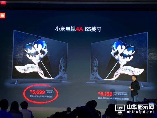 65寸4K HDR標準版5699元,人工智能語音版32GB 6199元;