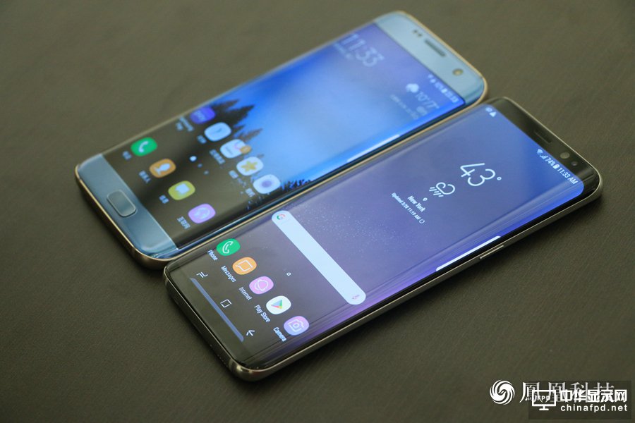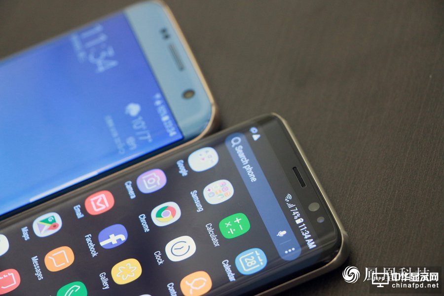 相比上一代的S7與S7 Edge,今年的S8系列屏幕增大了不少。依舊是一大一小,三星S8為5.8英寸,S8 Plus則達到了6.2英寸,分辨率均為2K。