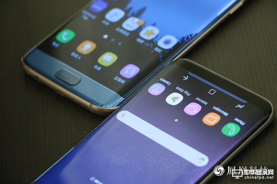 和小米MIX的全面屏不同的是,這兩款手機正面頂部雖然取消了“Samsung”標識,但還是保留了聽筒、攝像頭以及傳感器。比小米MIX強的是,曲面設計帶來了更圓潤的邊角。