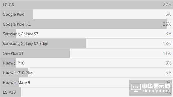 從用戶(hù)的投票結(jié)果來(lái)看,LG G6得票率最高,達(dá)到27%;其次是Google Pixel XL,也有26%的得票率。