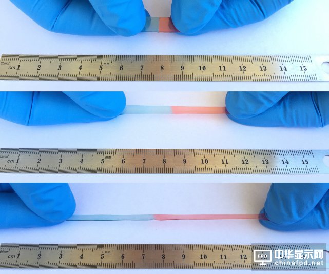 這種材料的延展性能也很強,可以拉伸到原尺寸的50倍。這種材料是由一種可延展的聚合物和一種離子鹽組成,它形成了一種特殊的粘合力,這種粘合力又被稱作離子偶極相互作用,是存在于帶電離子和極性分子之間的一種力。這就意味著,當這種材料破裂或者出現劃痕的時候,材料中的帶電離子和極性分子就會相互吸引,從而達到修復的目的。