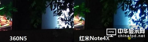 放大之后,我們發(fā)現(xiàn)Note4X拉高ISO的做法并沒帶來什么好處,樹葉是亮了一點,但輪廓上并沒領先,反倒還犧牲了亮部,燈箱的圖像和字跡遠不如N5清晰,樹葉的輪廓很模糊,噪點也更多。