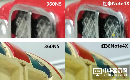 比細節(jié)的話,N5在近焦處即畫面左側(cè)表現(xiàn)不佳,而在遠焦處即畫面右側(cè)打贏了Note4X,總體平手。