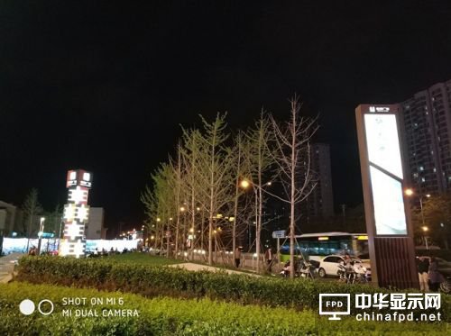 在夜間弱光的情況下,小米6的表現也比較不錯。雖然夜間情況下選擇不同的測光點,其明暗程度也不盡相同,不過在平均測光的情況下,小米6也能還原景物的色彩。