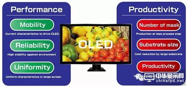 其中LTPS技術在大面積多晶硅形成上尚有一些問題需要克服,而且整體生產成本較高,而IGZO技術的載流子遷移率雖然不及LTPS技術,但對于OLED也足夠用了,其最大的優點就是在大面積生產時薄膜的均勻性較好,生產成本也相應較低。目前JOLED主要開發IGZO技術,但同時也在開發新的TFT制造技術。