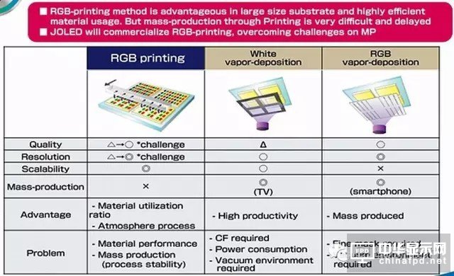 圖1 OLED成膜技術比較(JOLED提供資料)