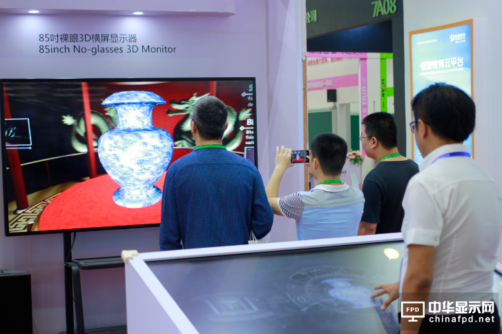 在展會現場,康得新裸眼3D實時交互解決方案尤其吸引眼球。85吋裸眼3D高清顯示屏與65吋觸控大屏巧妙融合,震撼的出屏效果、逼真的立體顯示、清晰完美的畫質呈現博得觀眾陣陣掌聲。