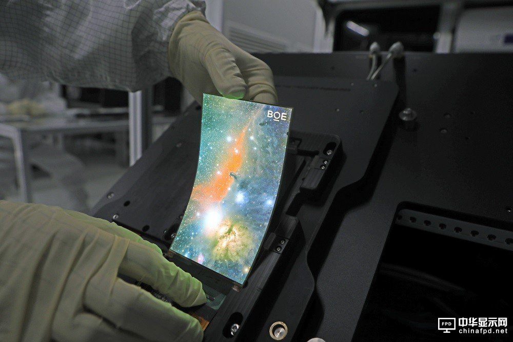 BOE(京東方)成都第6代柔性AMOLED生產線總投資465億元人民幣,于2015年5月開工建設,2016年7月主體廠房封頂。設計產能為每月4.8萬片玻璃基板(玻璃基板尺寸為1850mm×1500mm),定位于高端手機顯示及新興移動顯示等產品。