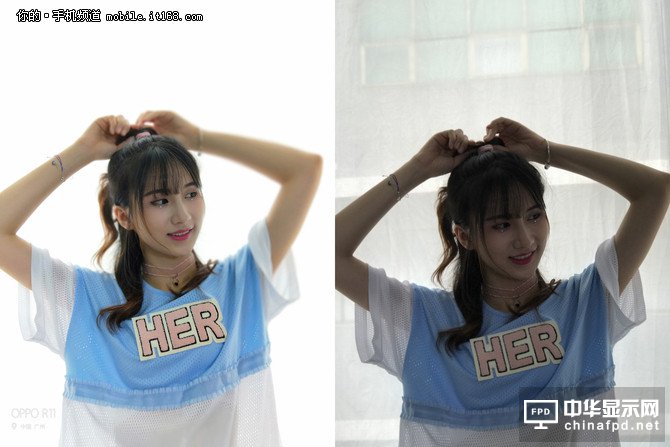 背靠光源拍照就會形成逆光的場景,如果不進行任何調節,背景會很明亮但人臉就會變黑。平常小編用單反的話,這種場景要的就是保證人臉的曝光正確即可。在這里OPPO R11對整體的把控做的不錯,人臉曝光正常的同時整體沒有太明顯的過曝,衣服的細節也還很清晰。至于iPhone 7 Plus,則是完全不行了。