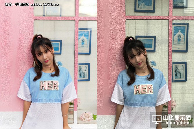 在陽光普照的街道上,盡管光線很充裕,但是OPPO R11和iPhone 7 Plus的照片差別卻很明顯。主要的原因是OPPO R11測光優先保證臉部為主,而iPhone 7 Plus考慮的是整天的環境光。前者基本上可以直接發朋友圈了,后者的話要發朋友圈肯定得用軟件后期一下。