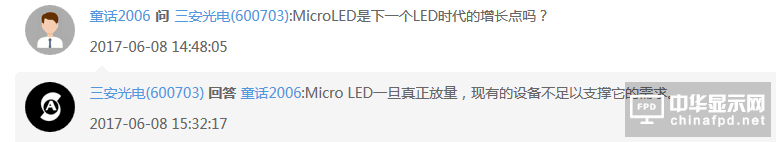 小編查閱近日三安光電于全景·路演天下互動記錄發(fā)現(xiàn),三安光電在回復(fù)投資者提問時表示,Micro LED是未來的重點發(fā)展方向,公司在一兩年前就開始在研發(fā)。