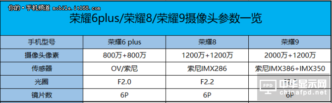 ▲榮耀6plus/8/9攝像頭參數一覽