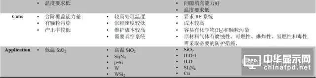 Table 3 Display 制造中幾種CVD 技術的優缺點(1)