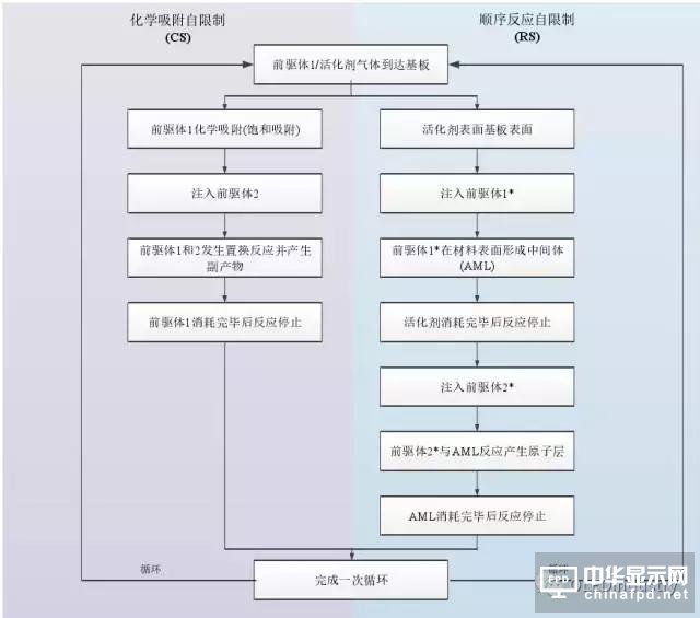 該過程與一般的CVD 過程類似, 但是在ALD 中原子層沉積的表面反應存在自限制性, 即化學吸附自限制(CS)和順次反應自限制(RS), 新一層原子膜的化學反應是直接與之前一層相關聯的, 這種方式使每次反應只沉積一層原子。