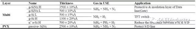• SiNx 絕緣膜:通過SiH4、N2 和NH3 混合氣體作為反應氣體, 通過輝光放電生成等離子在襯底上成膜。