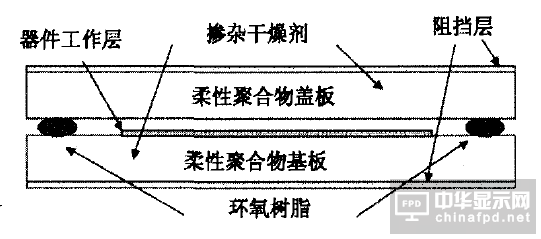 在使用玻璃襯底時, 常用的封裝技術是將顯示器密封在干燥的惰性氣體環境中, 如密封在有玻璃( 或金屬) 蓋的充氮的干燥的盒內, 玻璃( 或金屬) 蓋用紫外光固化的環氧樹脂固定。