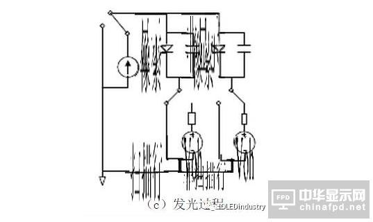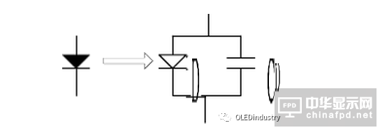 OLED是電流控制的器件,它的亮度和電流通過的平均時(shí)間成比例,當(dāng)電流未到OLED的發(fā)光閾值前,器件的發(fā)光亮度很小,當(dāng)電流達(dá)到其發(fā)光閾值后,OLED會(huì)隨著電流增加發(fā)光強(qiáng)度增大。一個(gè)OLED單元可以簡(jiǎn)化成一個(gè)LED和一個(gè)20~30PF的寄生電容并聯(lián)。