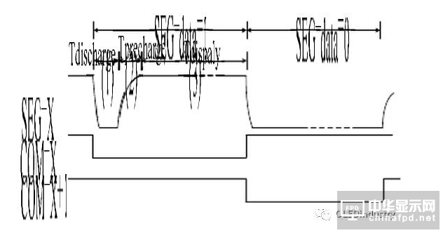 在一個(gè)掃描周期內(nèi),Common為低電平,Segment經(jīng)歷3個(gè)階段分別為:discharge、precharge、display。
