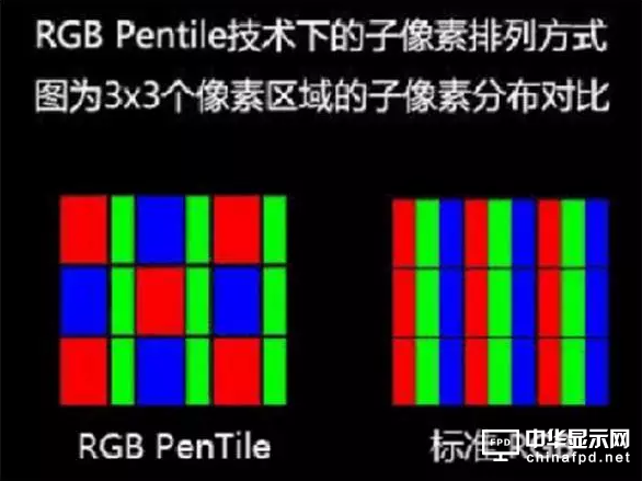 屏幕的材質以及子像素的排列方式也是影響屏幕顯示效果的重要因素。屏幕子像素的排列方式一般分為兩種,一種是標準RGB排列方式,另一種是RGB PenTile排列方式。