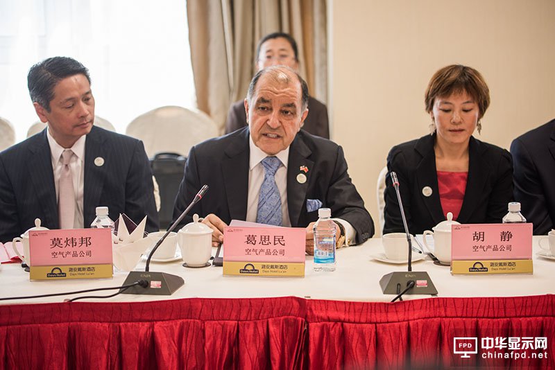 空氣產(chǎn)品公司董事會主席、總裁兼首席執(zhí)行官Seifi Ghasemi(中)在簽約儀式上發(fā)表演講。圖中其左側(cè)是公司工業(yè)氣體亞洲區(qū)總裁莫煒邦先生,右側(cè)是公司中國區(qū)業(yè)務(wù)發(fā)展和資產(chǎn)管理副總裁胡靜女士。