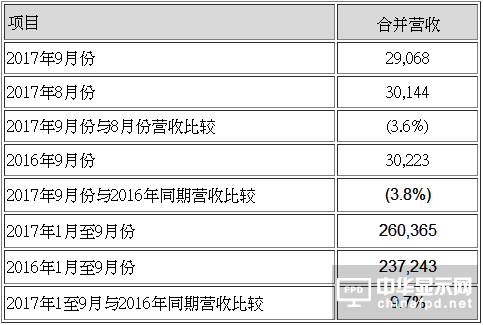 友達光電9月營收報告(單位:新臺幣百萬元):