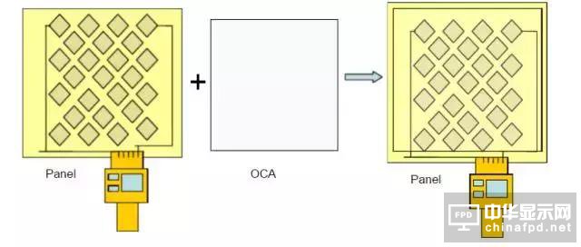 將FPC bonding后的Sensor與cover glass貼合在一起,依據所用膠材的不同,目前有兩種貼合方式,一種是OCA貼合,一種是OCR貼合。