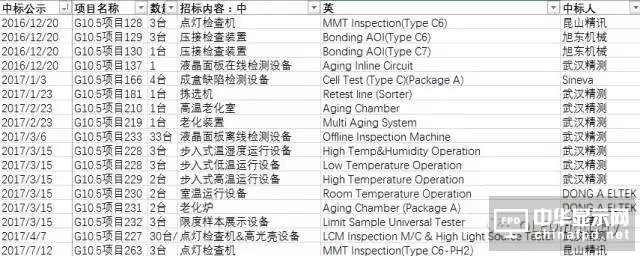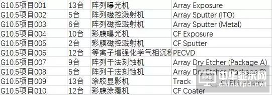 2016年10-11月,除各制程設備和檢測設備外,一些G10.5綜合設備開始招標。