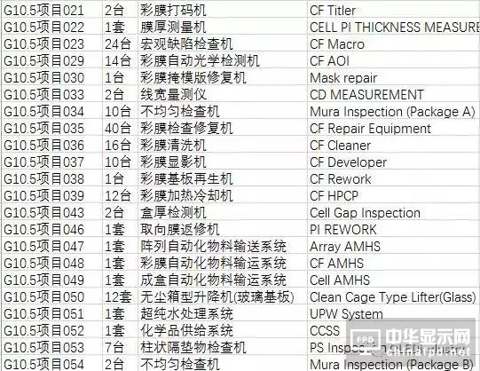 G10.5線、30K擴產線首批招標產品相似,以Array和CF制程設備為主