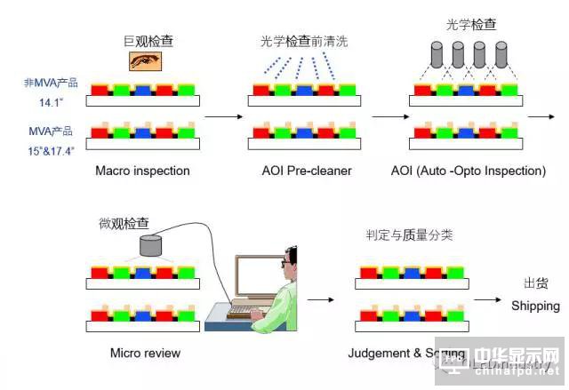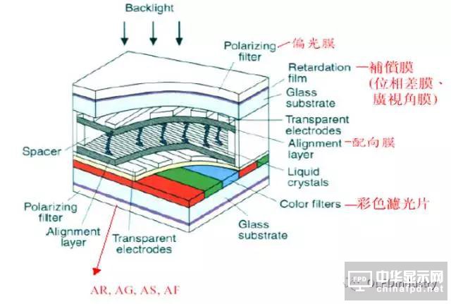 所謂的TFT面板制造,簡單的說,就是將一片彩色濾光片和一片有主動矩陣(Active Matrix)的玻璃基板組合,兩邊貼上偏光板,再加上驅動電路及框架的過程。