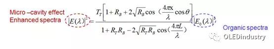 有機電致發光F-P光學微腔,使發光材料在特定波長處實現輻射,實現強度的增大和譜線的壓窄。其中,發光光譜受x、L影響較大。
