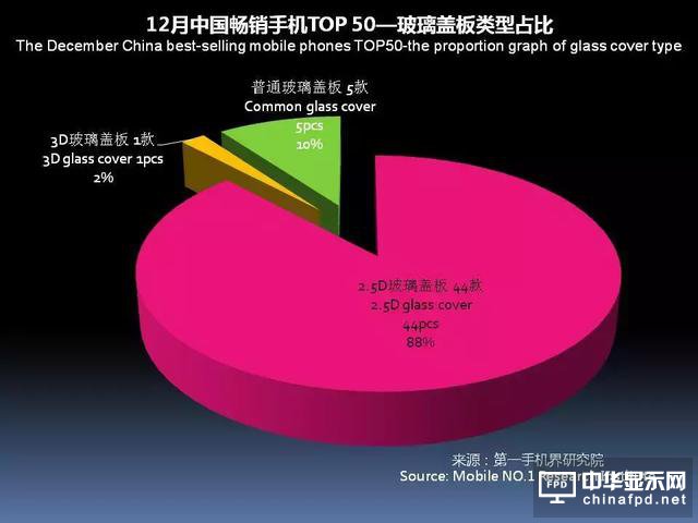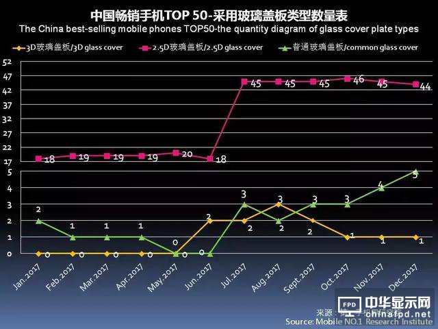2017年12月中國暢銷手機TOP 50中,采用3D玻璃蓋板的手機只有三星Galaxy S8+進入TOP 50。