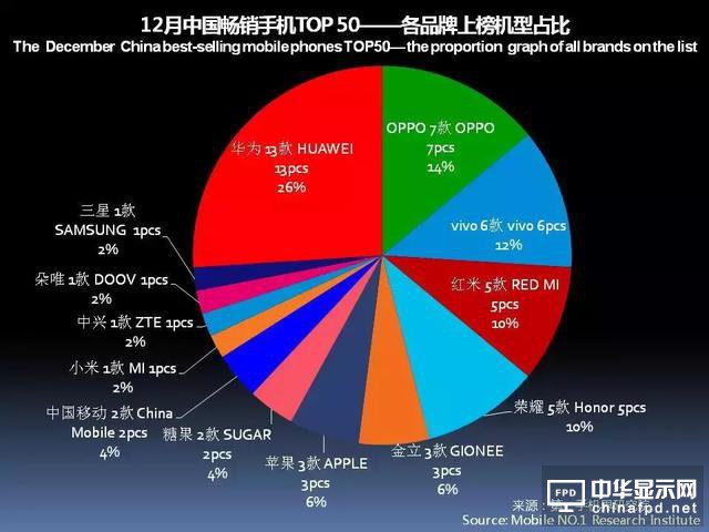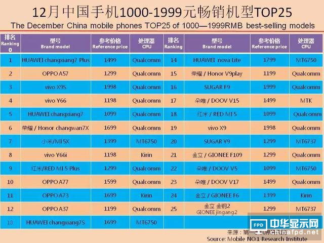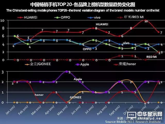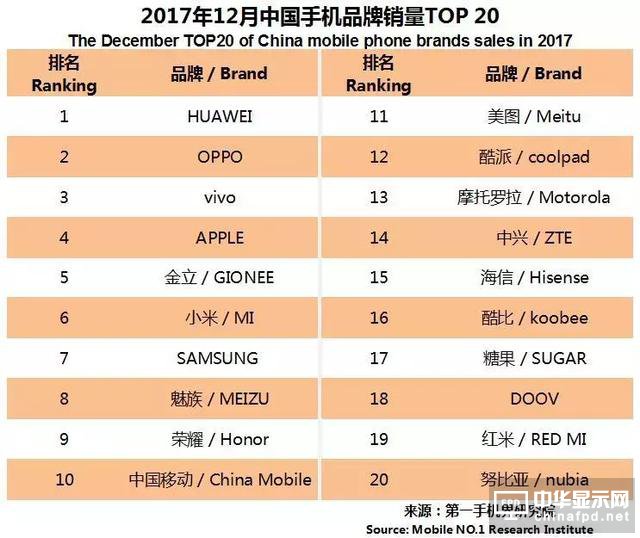 12月中國手機品牌銷量TOP 20值得注意的地方是,身陷資金短缺旋渦的金立,在市場上的表現還沒有出現異常反應。