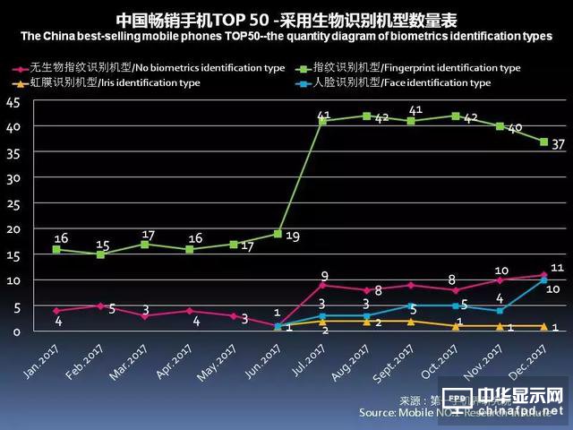 (備注:由于多個機型會同時擁有指紋、虹膜和人臉識別,故機型數量會有重疊)
